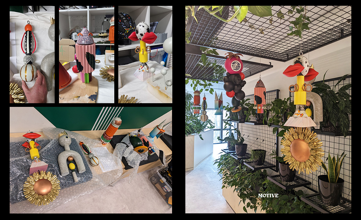 You enter the space and meet the ‘Hearsties’ – a bespoke collection of hanging totems, each individual feature inspired by a page torn from one of Hearst’s magazines. Quirky and textured, these almost-sentient beings set the tone for the floor’s imaginative energy.
