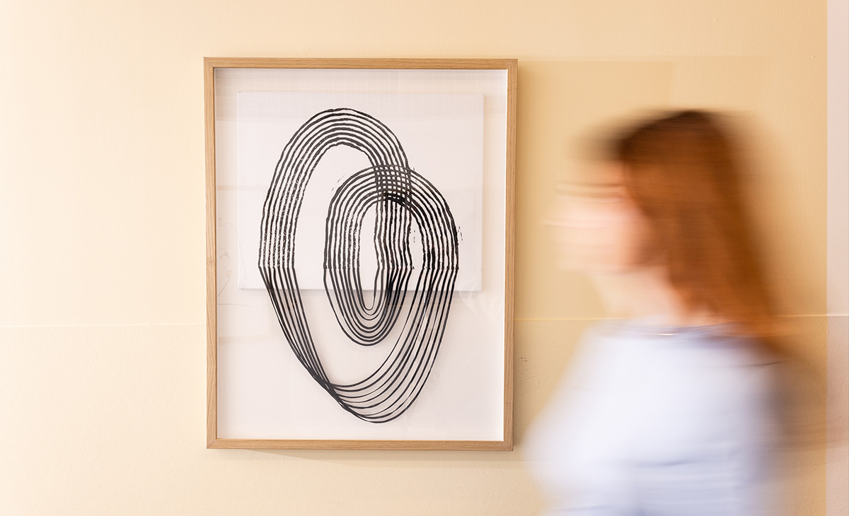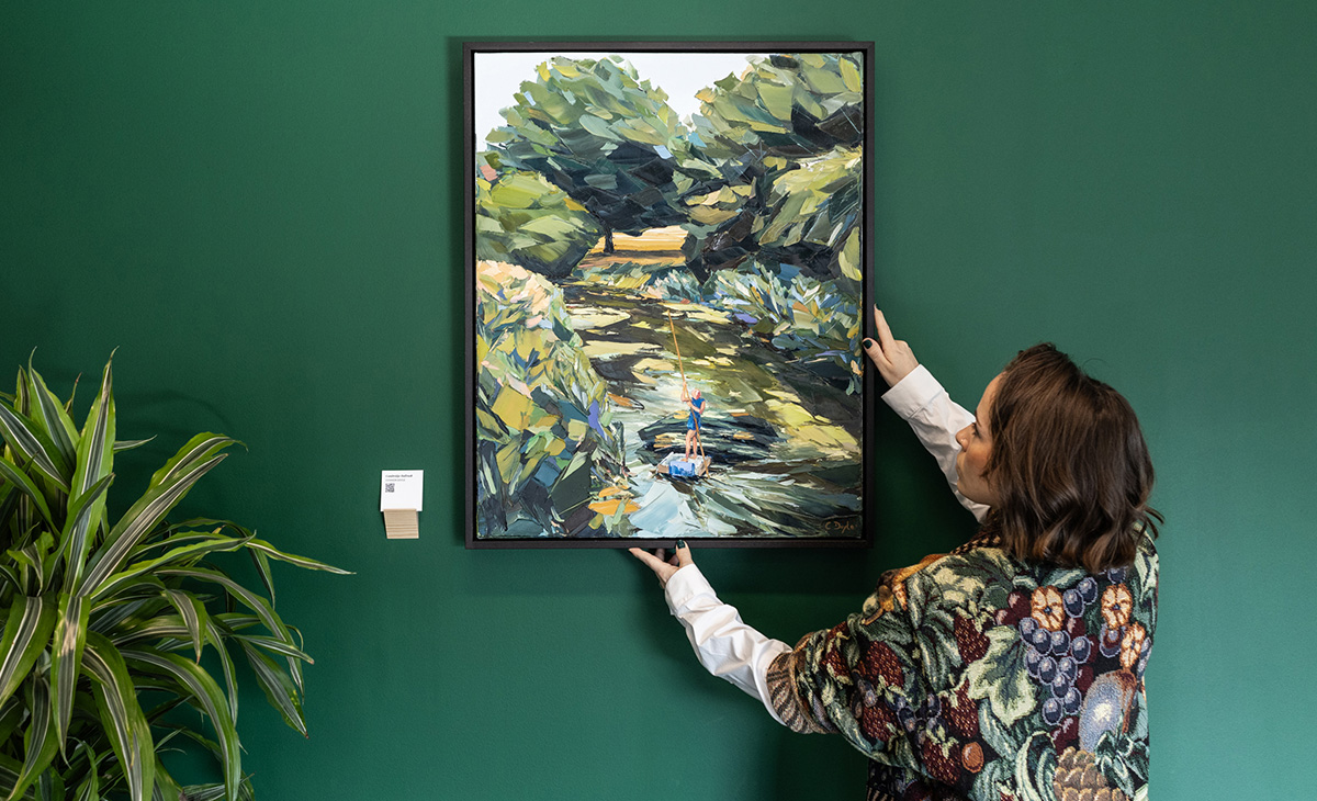 In quieter contrast, a forest green, leafy retreat sits tucked in a corner of the floor, a pause from the buzz, where a canvas by Connor Doyle reimagines a scene from Country Living, using a palette knife to transform the moment into something both grounded and dreamlike.