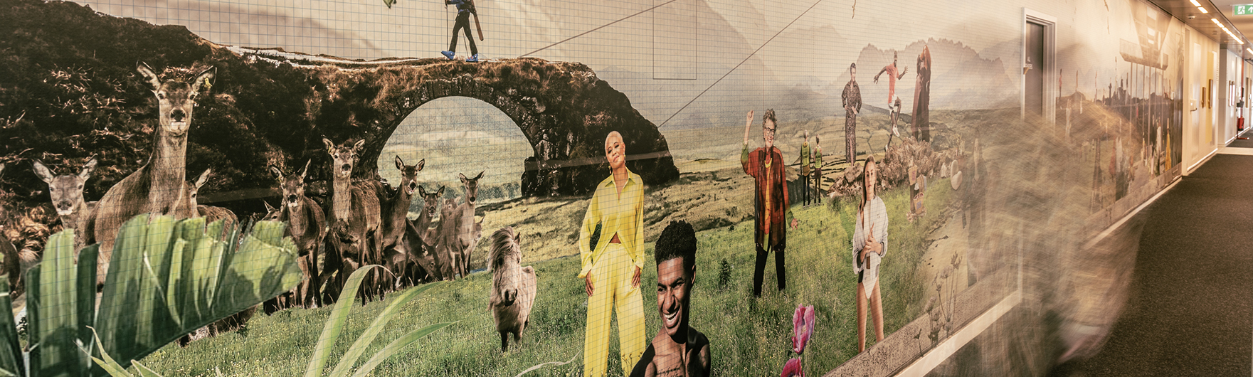 One showstopping moment comes in the form of Hearst Wonderland, a 15-metre mural by photo-montage artist Maxine Gregson. Evoking nostalgia and futurism in equal measure, the piece gathers familiar faces from Hearst’s archives and places them in a surreal, utopian landscape that echoes the free and feel good notion of the company.